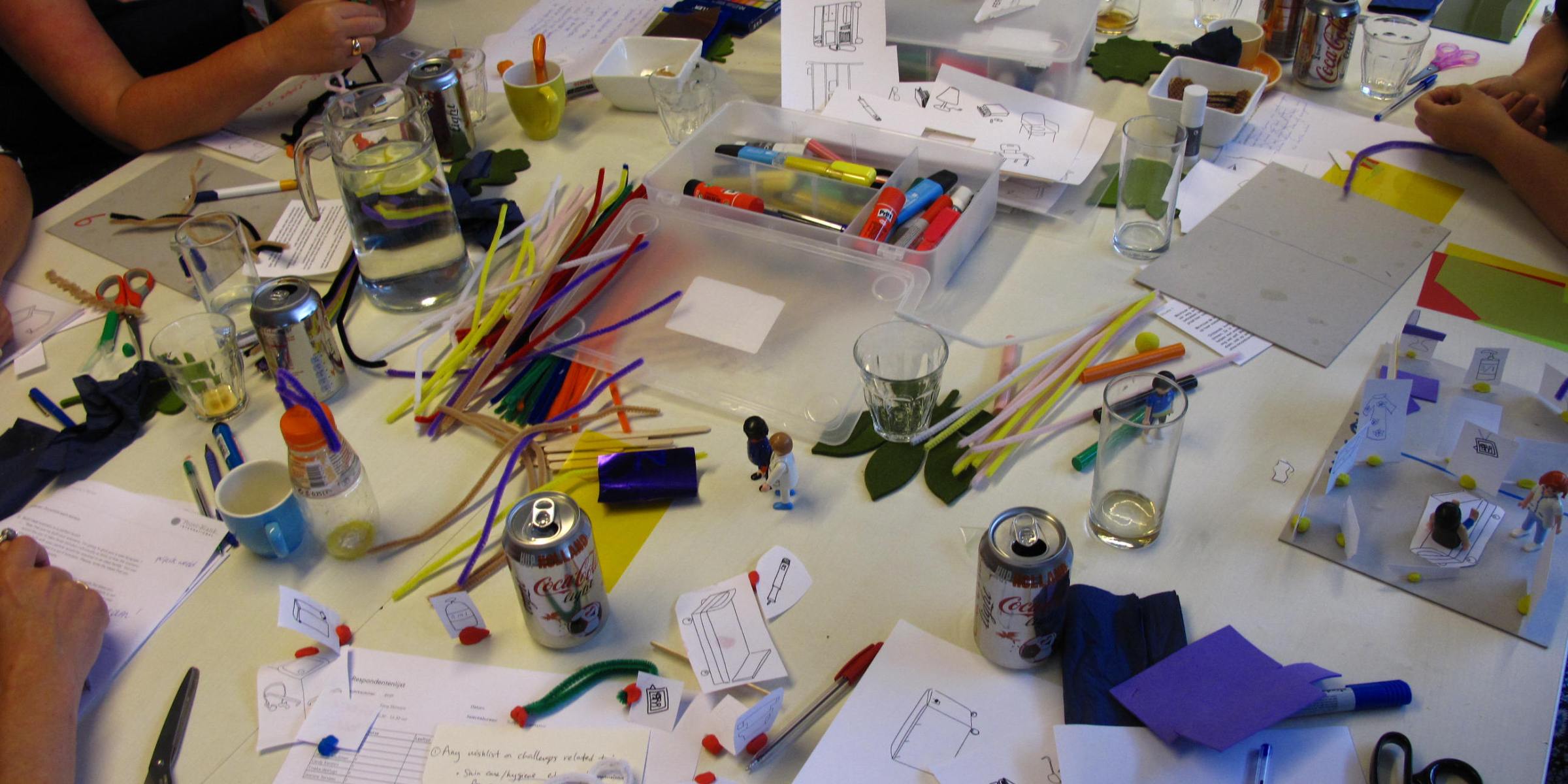Rapid prototyping (not 3D printing only) is a way of enabling teams to try out their solutions quickly and in doing so, learn and improve. I have set up and facilitated such sessions for various projects. Of course, all highly confidential, so no images, sorry!